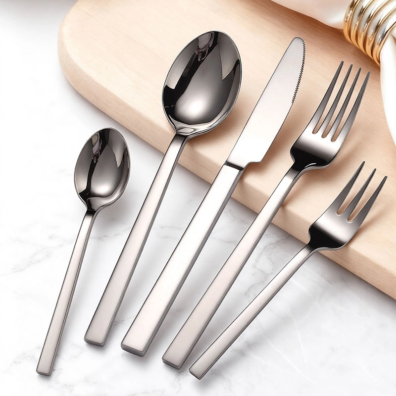 Modern Square Handle Design: A unique geometric square handle offers a stylish, contemporary look and a comfortable grip, perfect for modern table settings.