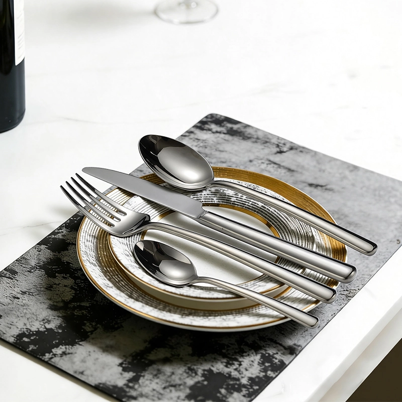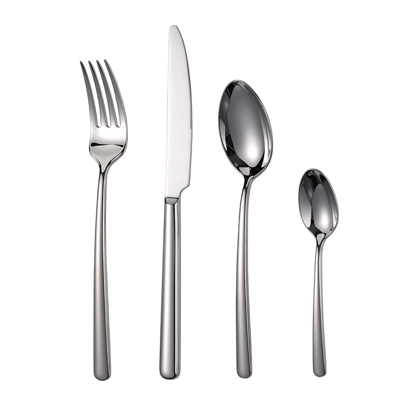 Wholesale silver flatware sets include 4-piece stainless steel cutlery for commercial use, featuring food-grade material, mirror finish, and ergonomic handles. Ideal for restaurants, cafés, and distributors. Factory-direct supply ensures stable wholesale availability and on-time delivery. Contact us for quotes.