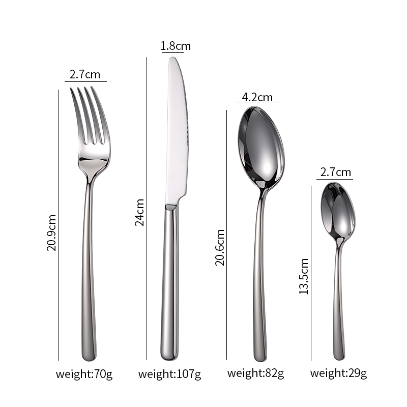 Classic 4-Piece Set: Includes dinner knife (sharp serrated edge), dinner fork (smooth tines), soup spoon (deep bowl), and teaspoon (dessert/coffee use). Covers western meals, light bites and afternoon tea.