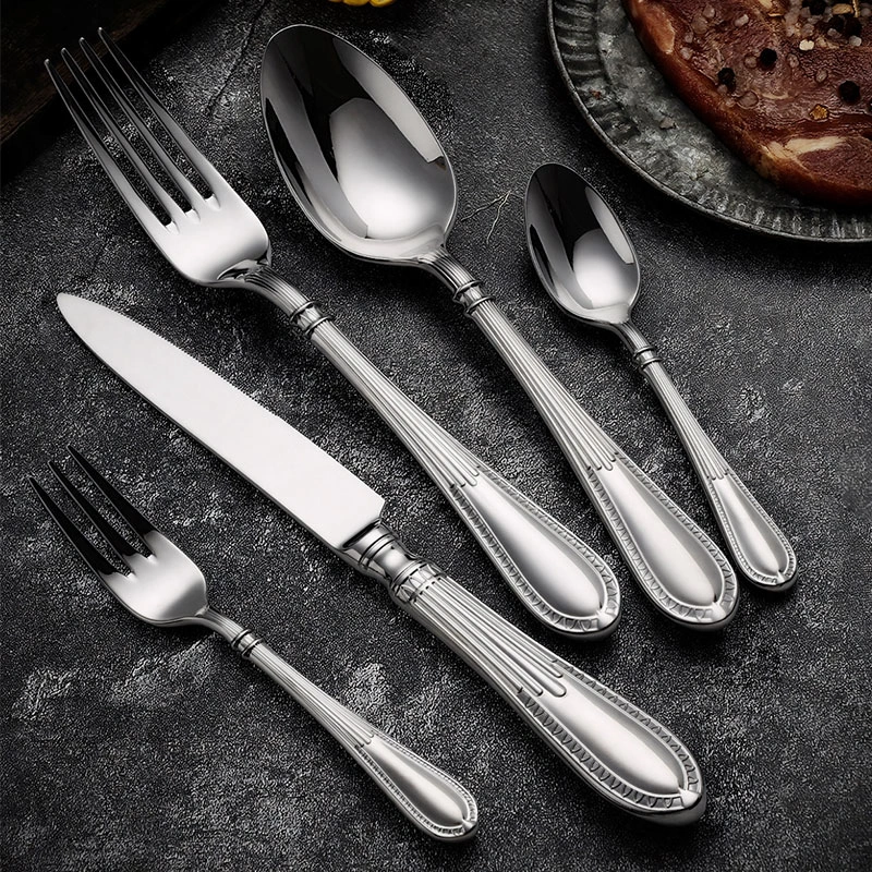 Custom flatware sets designed for restaurants, hotels, and catering projects, combining premium stainless steel durability with elegant embossed design options to match different table styles. Contact us for wholesale pricing, OEM/ODM customization, and bulk supply solutions!